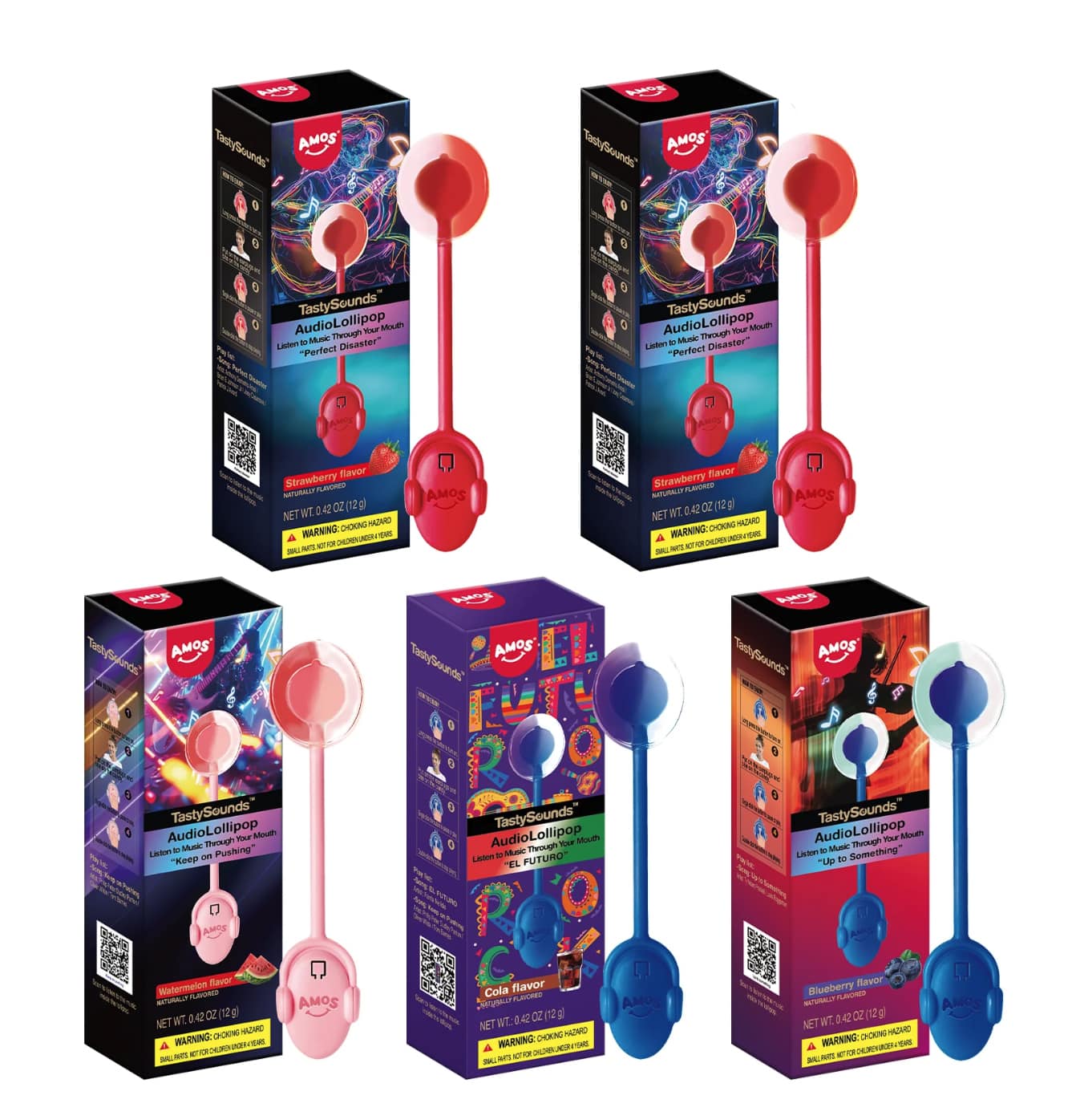I think this is the most high-tech candy I’ve encountered. Amos Music Lollipops employ BONE CONDUCTION TECHNOLOGY that’s activated when you put the pop in your mouth and bit down on the candy. Though nobody on the outside can hear it, YOU can hear the music playing inside your head.
