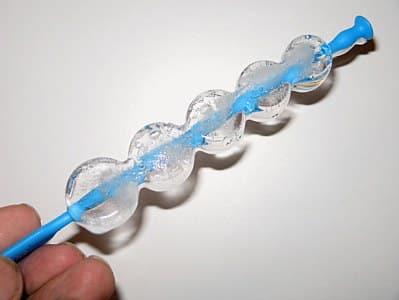 The quirky-shaped ice cubes are connected by a skewer that freezes in the middle of them, forming the ice kabobs. Once you remove the skewers from the silicone rubber tray, you can then place the kabobs in your favorite beverage.