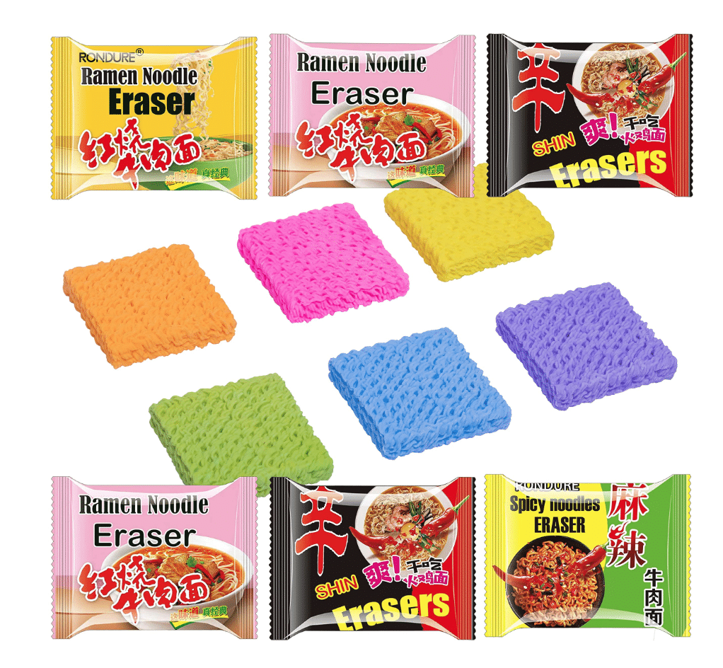 We love when stupidity is taken all the way. In this case, not only are the mini ramen packages just like the big real ones, but the erasers themselves look like the noodles you’d find in side a real package of ramen. (except for the colors, or course)
