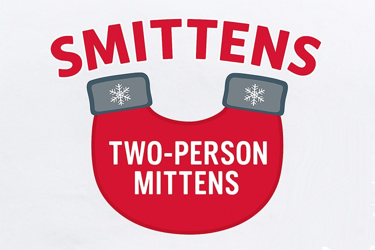 They’re soft and cozy mittens built for two people. You stick your left hand in one of the cuffs. Your significant other sticks his/her right hand in the other one. And you can hold hands and keep warm even in a blizzard! (We tested them in a blizzard – they work!)